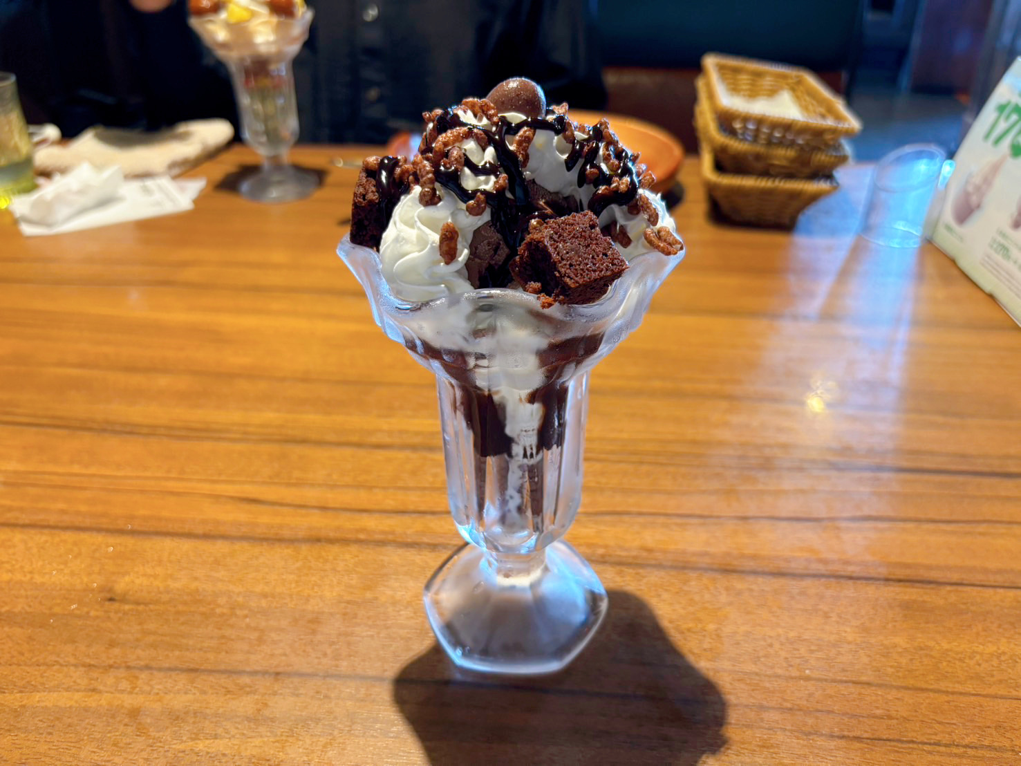 総じて、本品はチョコレート好きの方はもちろん、食後に「もう少し甘いものを」と思ったときに最適な一杯です。ソフトのさっぱり感、チョコのビター感、ケーキのしっとり感、クリスピーの軽快さ——異なる食感と風味が一つのグラスで綺麗に調和しており、満足度の高いデザートでした。最新情報の確認や取扱状況は公式サイトをご参照ください。