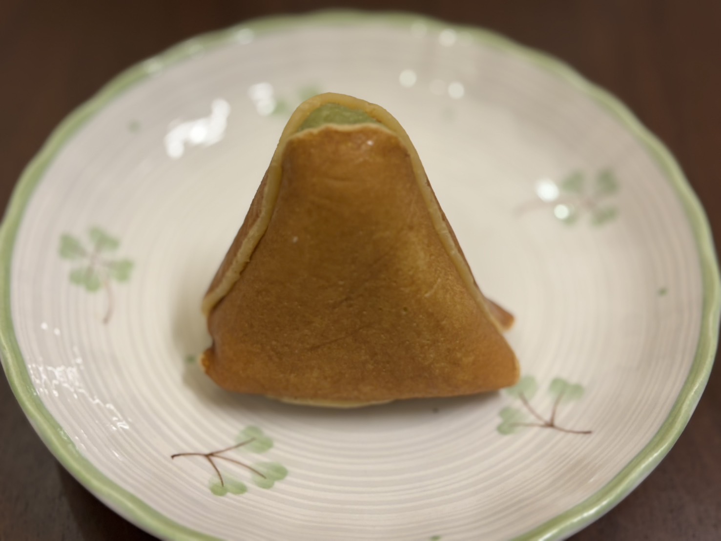 まず印象的なのがフォルム。一般的などら焼きの“丸”というより、きゅっと包んだような三角形で、手のひらサイズにまとまっています。持ちやすくて、ちょっとしたおやつにもぴったり。