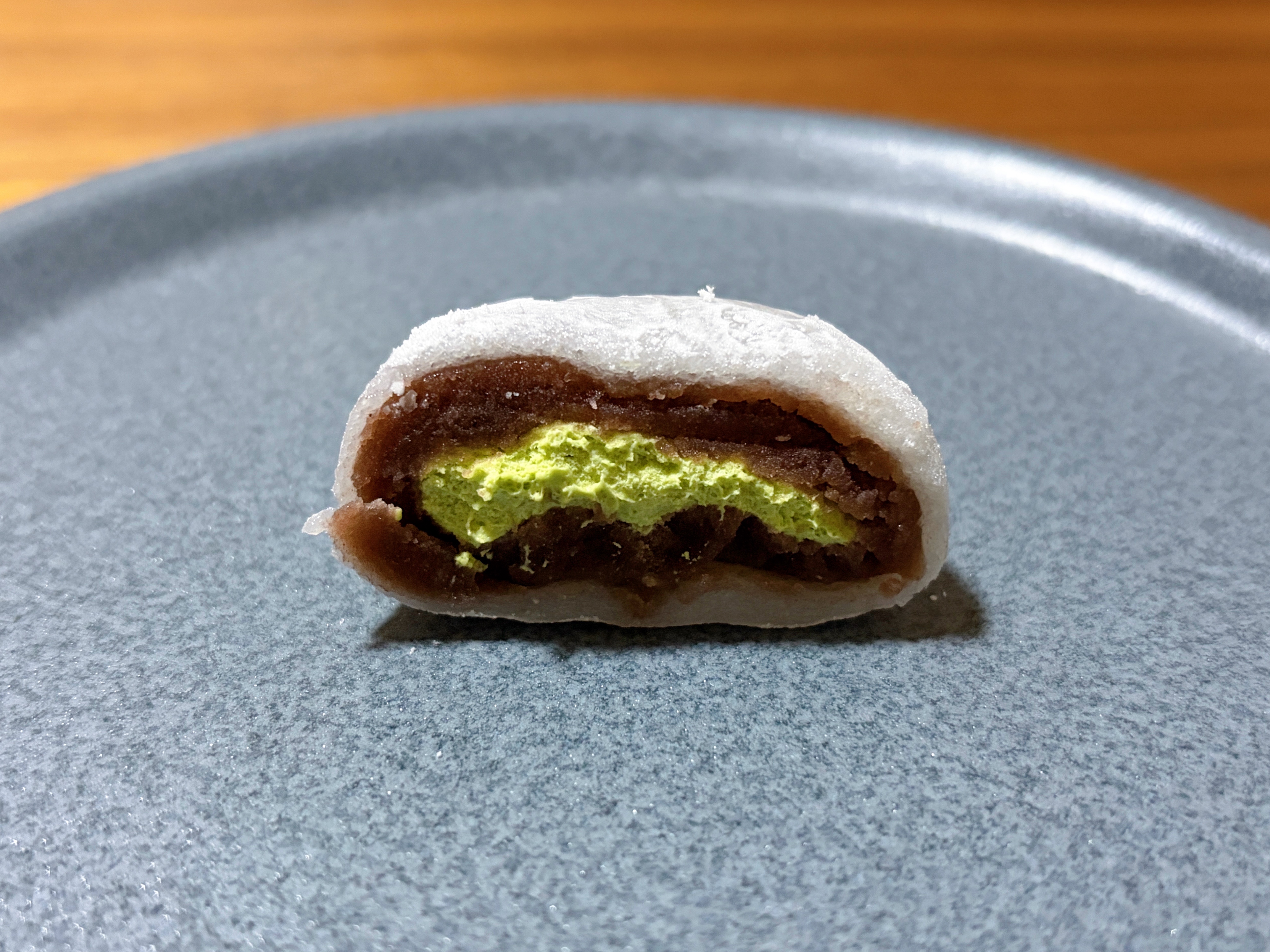 そこに、コクのある餡の甘みがふわっと広がり、続いて抹茶クリームの香りが追いかけてきます。