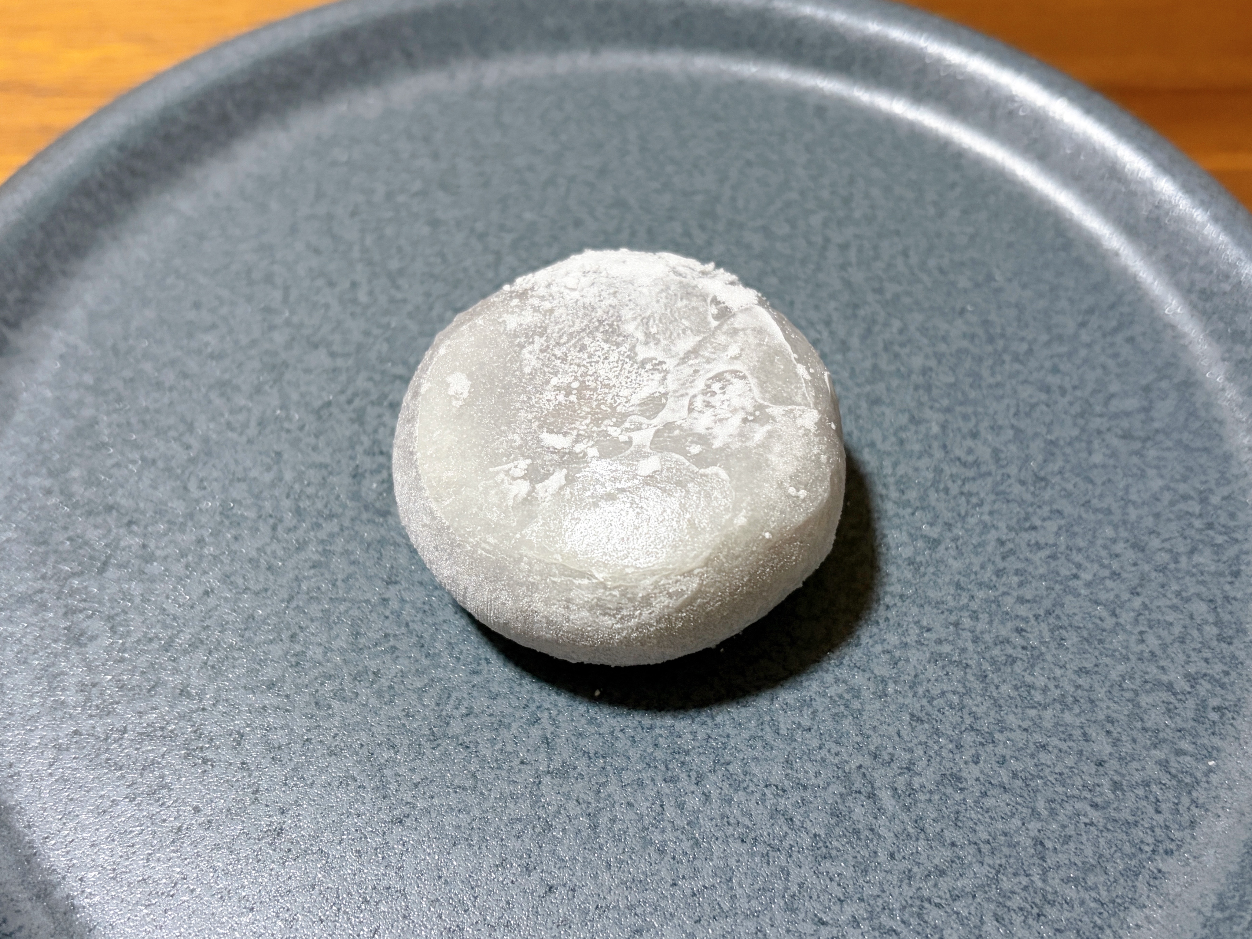 個包装を開けると、白く粉をまとった丸い大福が登場。