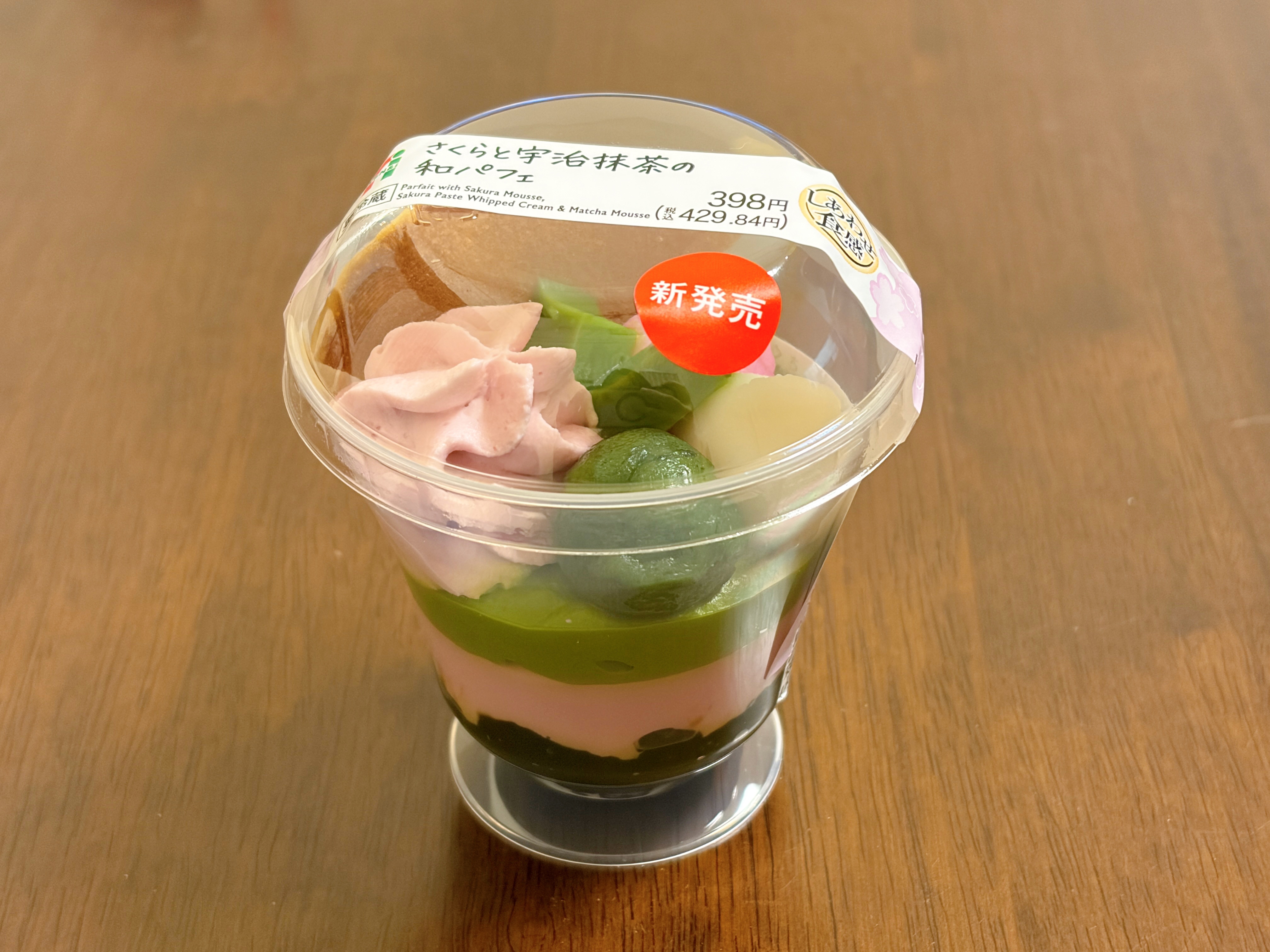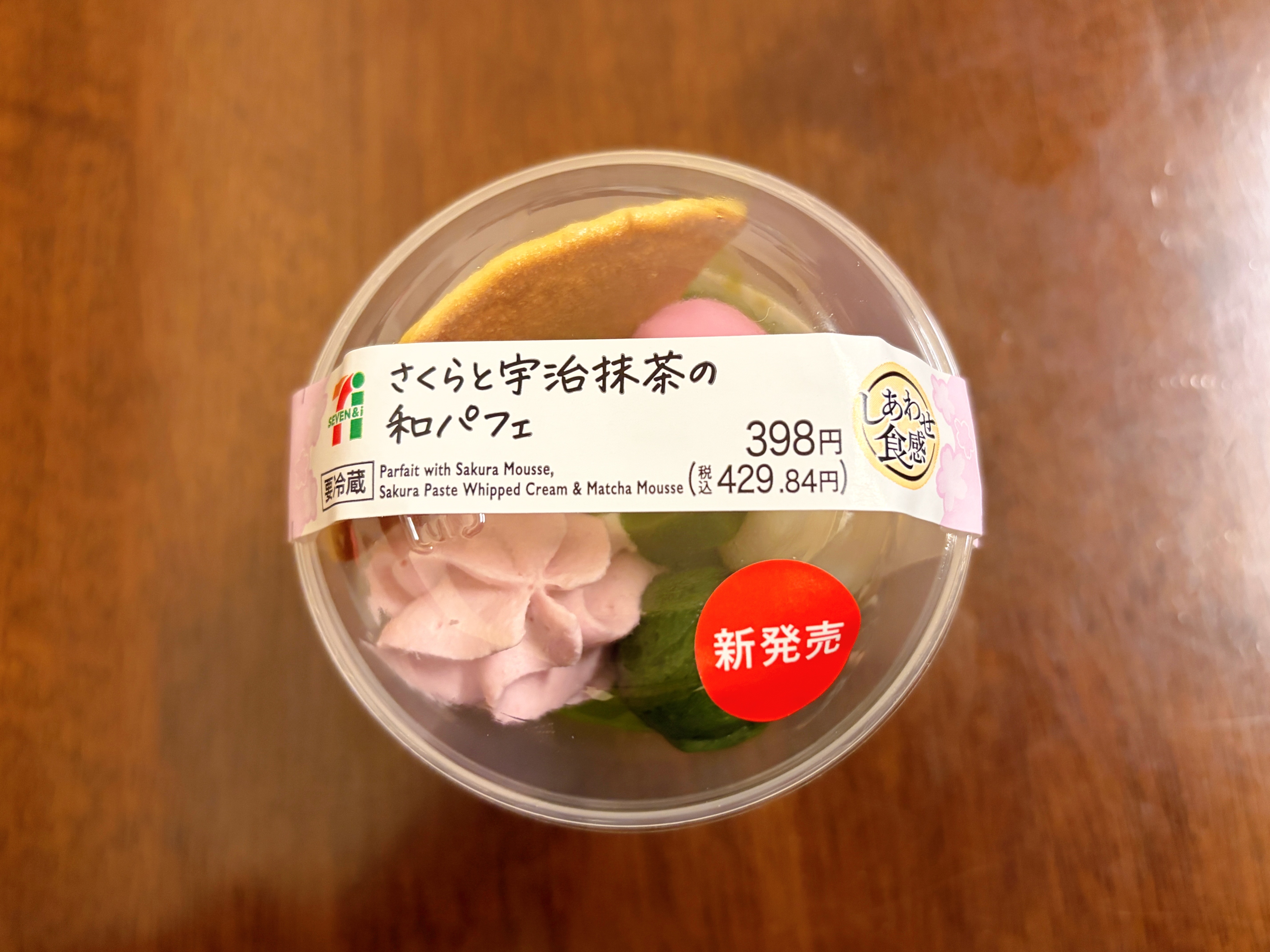 春スイーツが気になる季節、セブンイレブンで「さくらと宇治抹茶の和パフェ」を見つけたので実食レビューしていきます。淡いピンクと濃い抹茶グリーンのコントラストがきれいで、透明カップ越しでも“春の和スイーツ”感が伝わってくる一品。価格は398円(税込429.84円)と、コンビニパフェとしては手に取りやすいラインです。