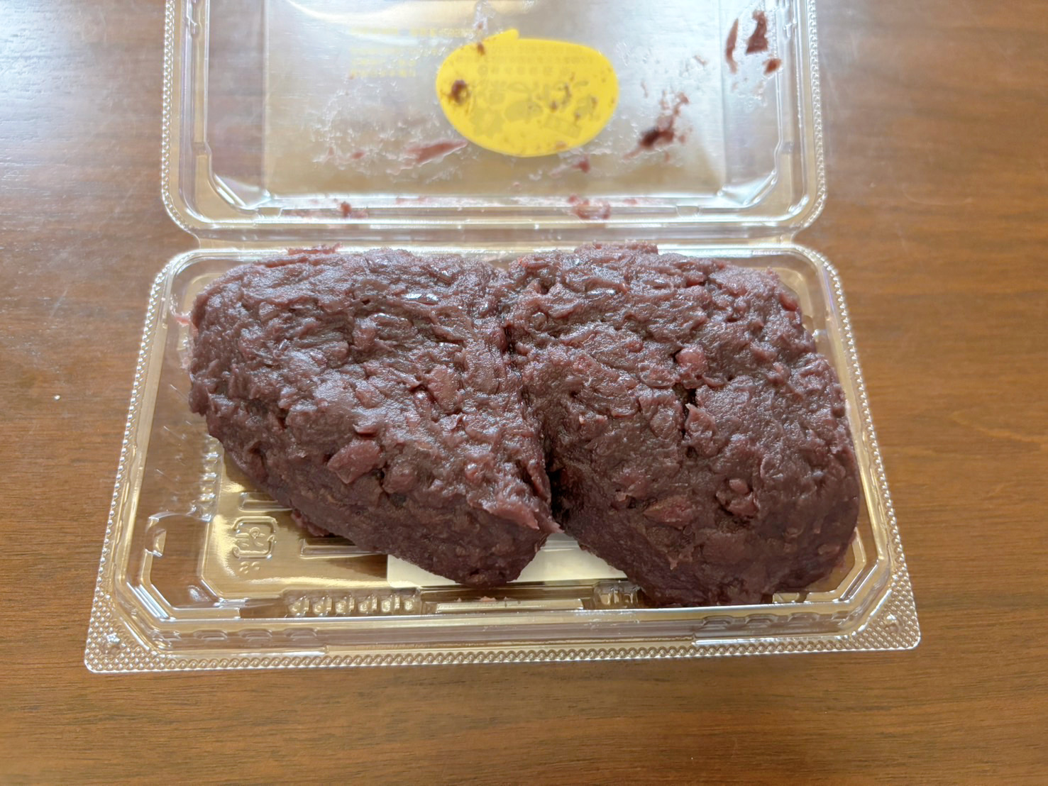 価格は1パック350円で2個入り。コンビニスイーツと変わらない価格帯でありながら、手作りの大ぶりなおはぎが2つ入っているため、圧倒的な満足感があります。食べ応えがしっかりあるので、ちょっとした軽食代わりにもなりますし、お土産にも最適です。
