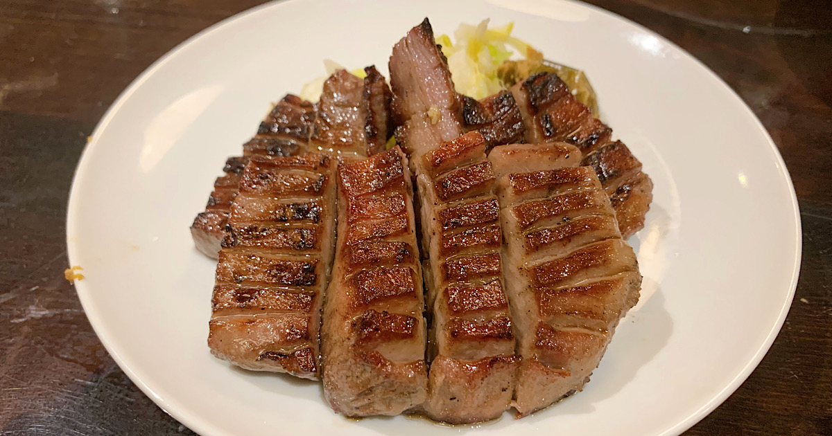 厚切りなのに硬さを感じにくく、噛んだ瞬間にすっと歯が入り、そのあとに肉のコクがじんわり広がる。